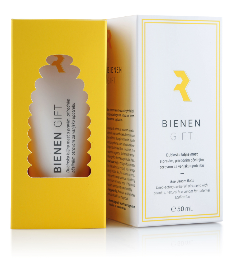 Nabrojena eterična ulja i PČELINJI OTROV djeluju pogodno na mišićne i upale zglobova. Sastavnica pčelinjeg otrova